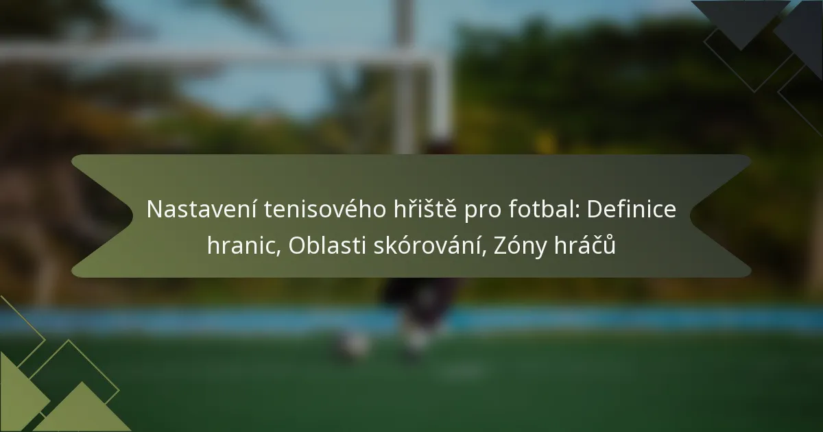Nastavení hřiště na fotbalový tenis zahrnuje přesné definice hranic, které určují hrací plochu a podporují fair play. Klíčovými komponenty jsou určené skórovací oblasti, které ovlivňují akumulaci bodů, a specifické zóny pro hráče, které určují jejich postavení a pohyb během zápasů. Pochopení těchto prvků je nezbytné pro efektivní hru a rozvoj strategie.
